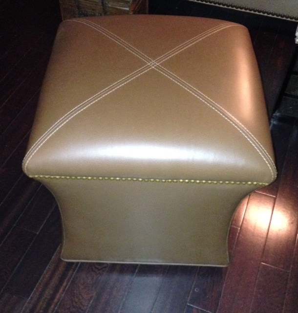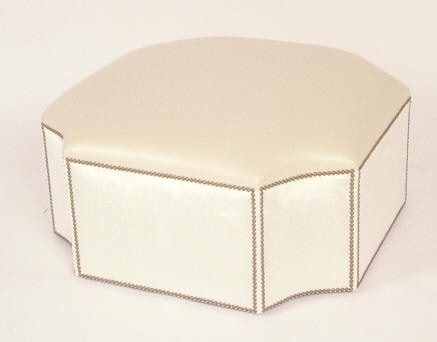 STAR OF SIAM OTTOMAN - ITALIAN LEATHER w/ POLISHED CHROME TACKS.