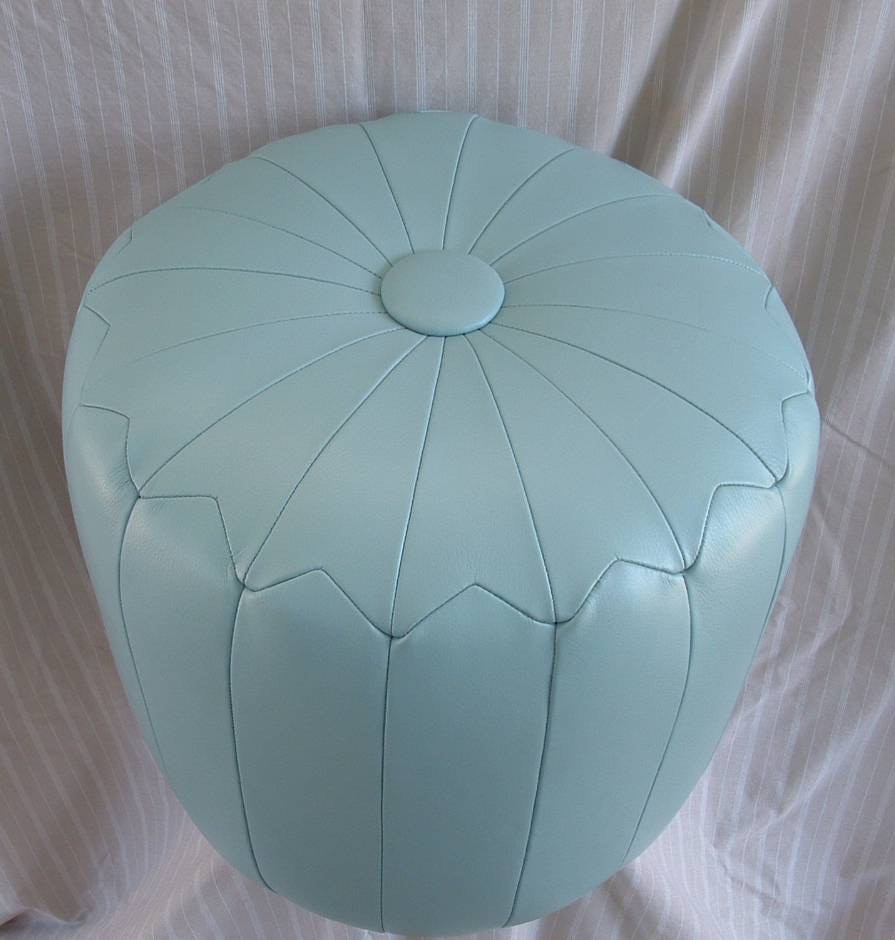 PINCUSHION OTTOMAN - ITALIAN LEATHER - COLOR: TIFFANY BLUE & LEMON TWIST; ADDITIONAL LEATHERS AVAILABLE